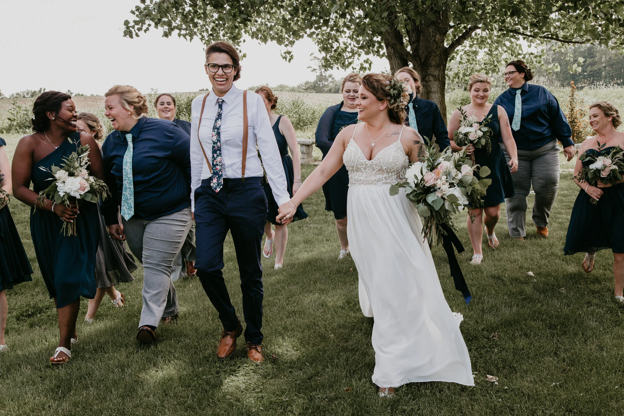 The Dress: Designed by Venus Bridal, Megan’s sheath bridal gown is full of special details. The front bodice is swirling with beads and pearls with a V-neck bodice and spaghetti straps. Surprise! The back is an illusion netting with pretty buttons. To top it off, the tulle skirt has an unexpected slit, making this dress simply gorgeous and one of a kind.