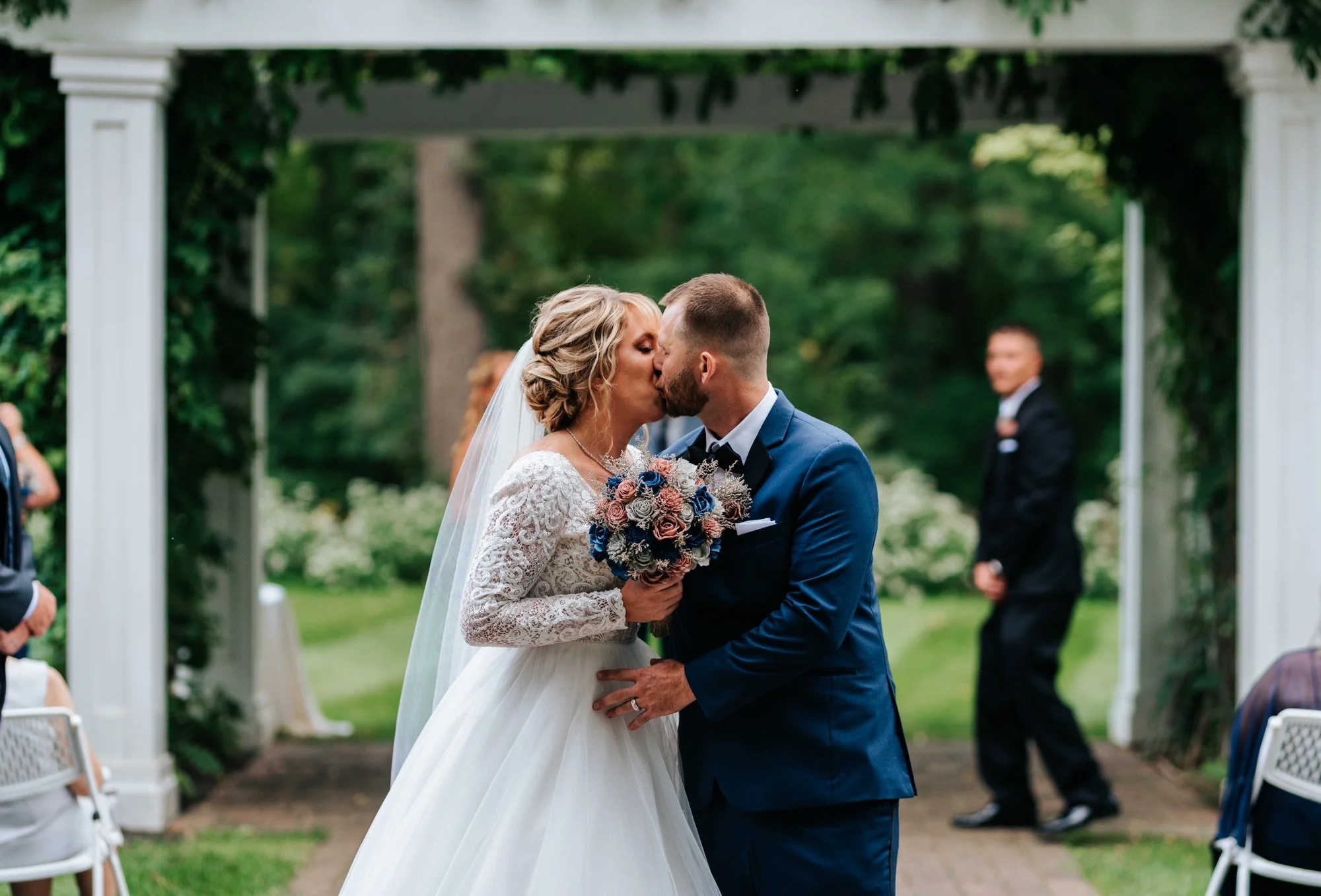 The Dress: Melissa looked like she came straight from a fairytale in her dress “Tiana” by Maggie Sottero! Melissa was dreamy, glamorous, and mega sophisticated in this long-sleeved ball gown wedding dress. The sparkle details on the back and bodice stand out perfectly amongst the lace bodice and full tulle skirt. Thank you Melissa for being a Memories Bride!