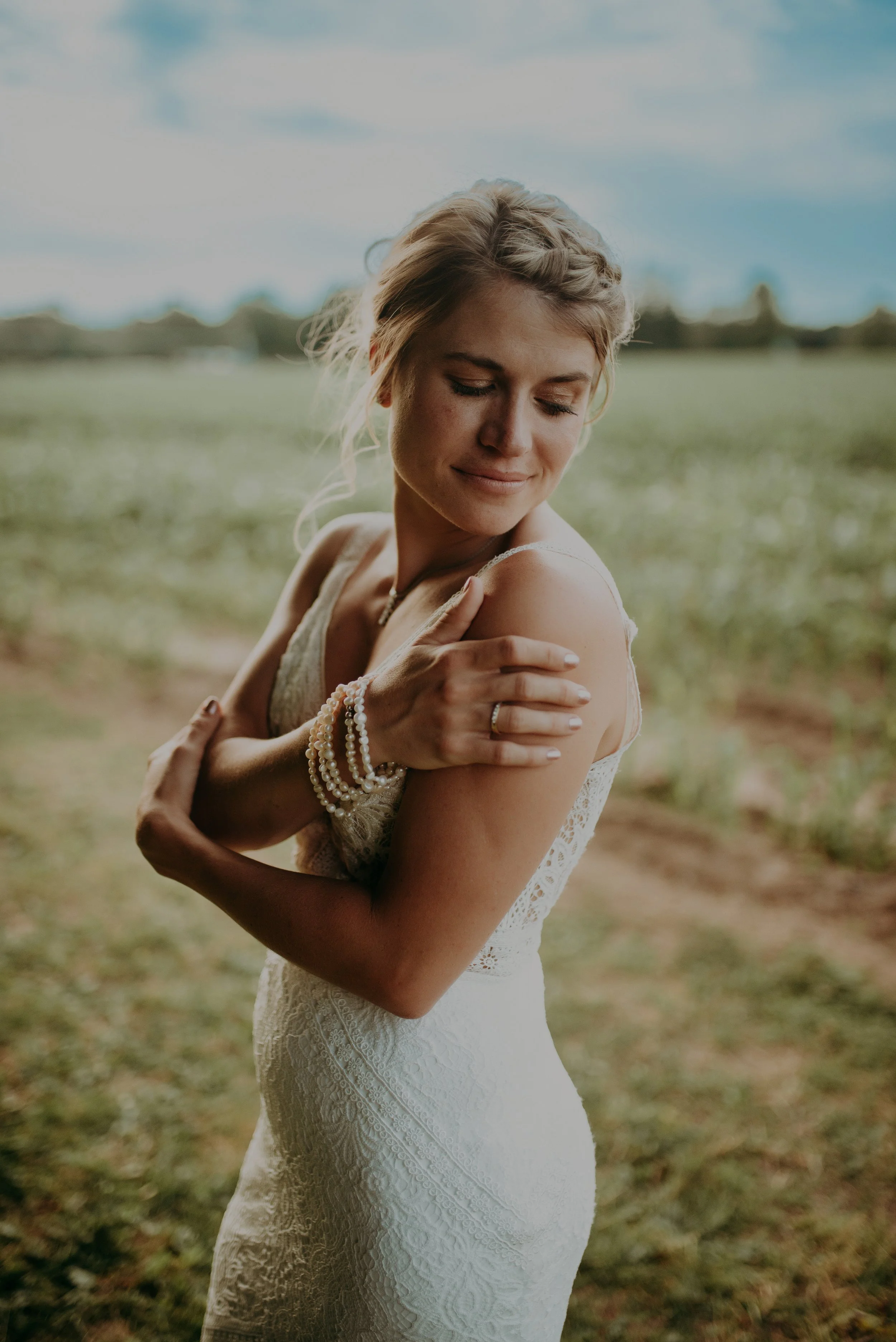 The Dress: Alicia was absolutely stunning in her Lillian West 66136 gown — a romantic, free-spirited design that felt effortlessly confident and beautifully her. The allover lace created rich texture from head to toe, while the plunging illusion V-neckline and subtle side cutouts added a modern, flattering edge. Delicate lace details throughout gave the gown its signature bohemian feel, and the scalloped train finished the look with a soft, unforgettable sweep. Alicia, thank you for being a Memories Bride! We’re so honored to have been part of your gorgeous celebration.